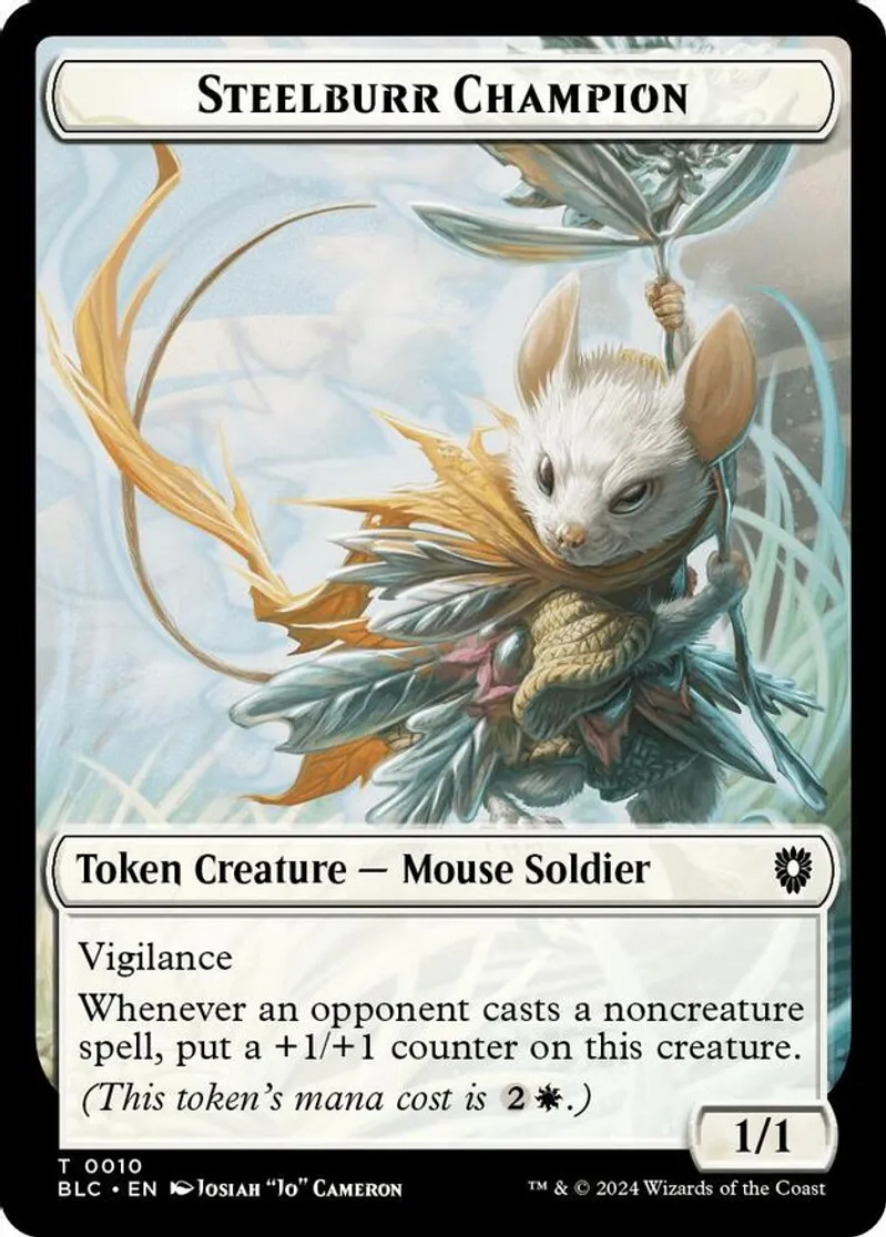 Magic: the Gathering (mtg) Token token creature — mouse soldier // token creature — squid Steelburr Champion // Squid Double-Sided Token from Bloomburrow Commander Tokens (TBLC) last updated 2026-02-21 15:28:02