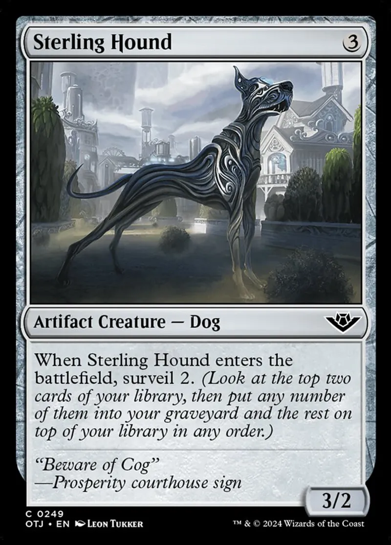 Magic: the Gathering (mtg) common Artifact Creature — Dog Sterling Hound from Outlaws of Thunder Junction (otj) last updated 2025-12-13 15:59:02