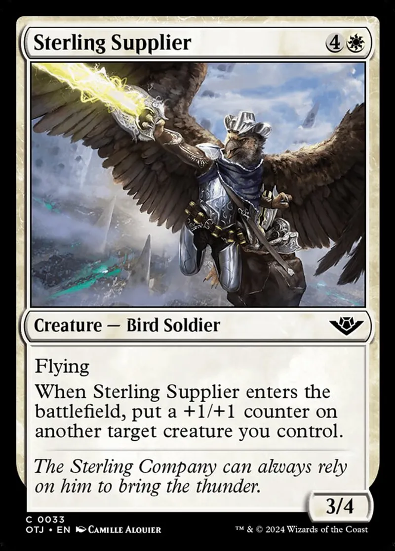 Magic: the Gathering (mtg) common Creature — Bird Soldier Sterling Supplier from Outlaws of Thunder Junction (otj) last updated 2025-12-20 15:58:05