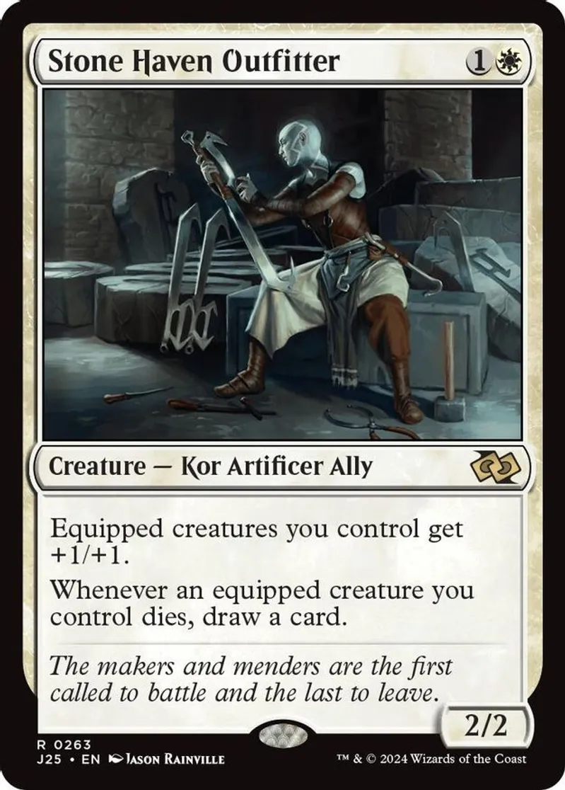 Magic: the Gathering (mtg) Rare creature — kor artificer ally Stone Haven Outfitter from Foundations Jumpstart (J25) last updated 2026-02-21 15:34:02
