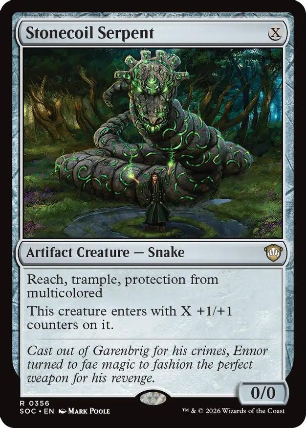 Magic: the Gathering (mtg) Rare artifact creature — snake Stonecoil Serpent from Commander: Secrets of Strixhaven (SOC) last updated 2026-04-17 00:28:08
