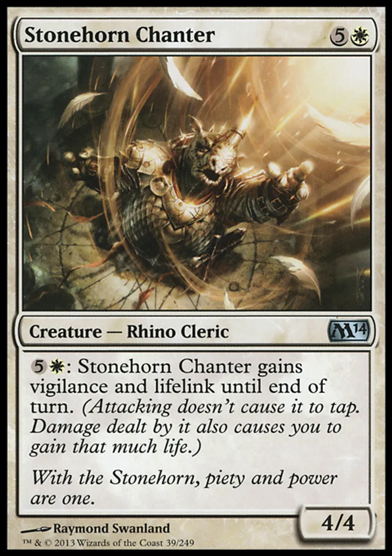 Magic: the Gathering (mtg) Uncommon Creature - Rhino Cleric Stonehorn Chanter from Magic 2014 Core Set (M14) last updated 2026-02-21 17:14:02