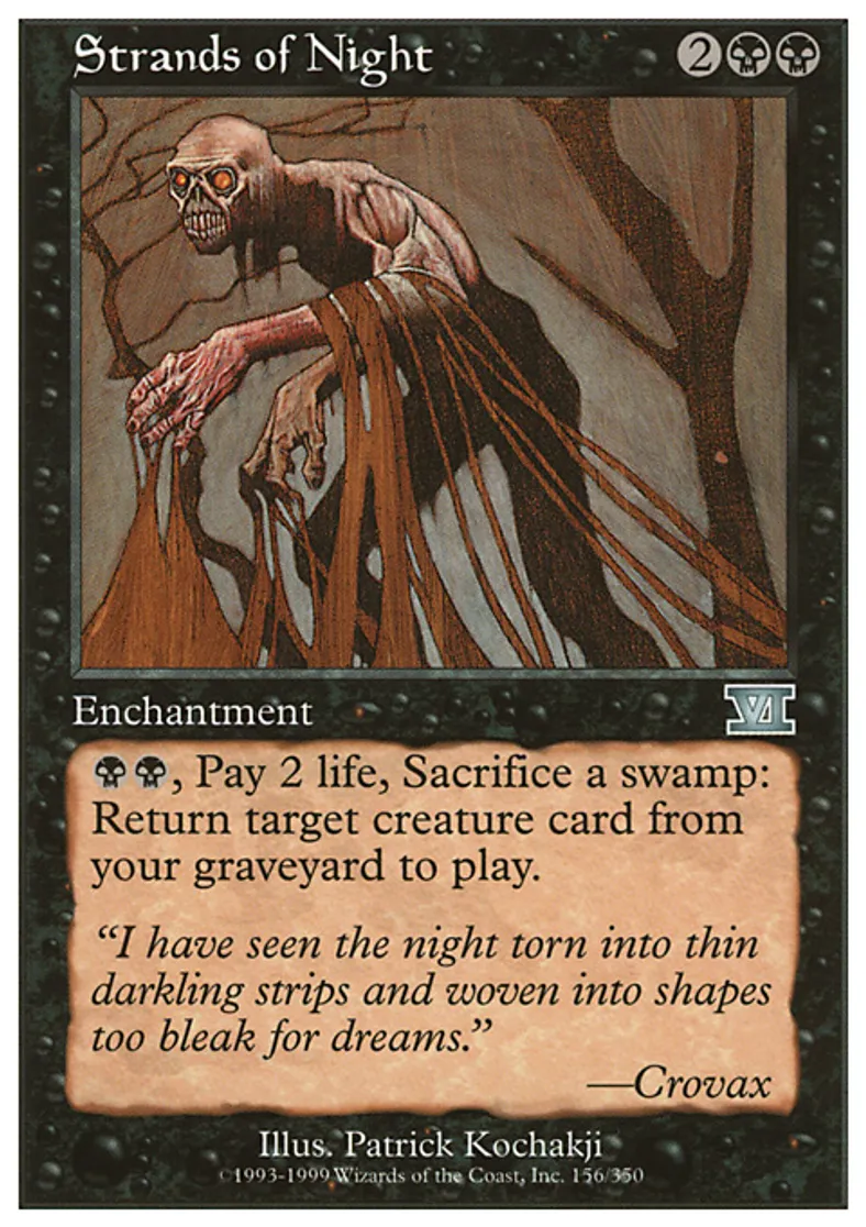 Magic: the Gathering (mtg) Uncommon Enchantment Strands of Night from Classic Sixth Edition (6ED) last updated 2026-02-24 15:49:02
