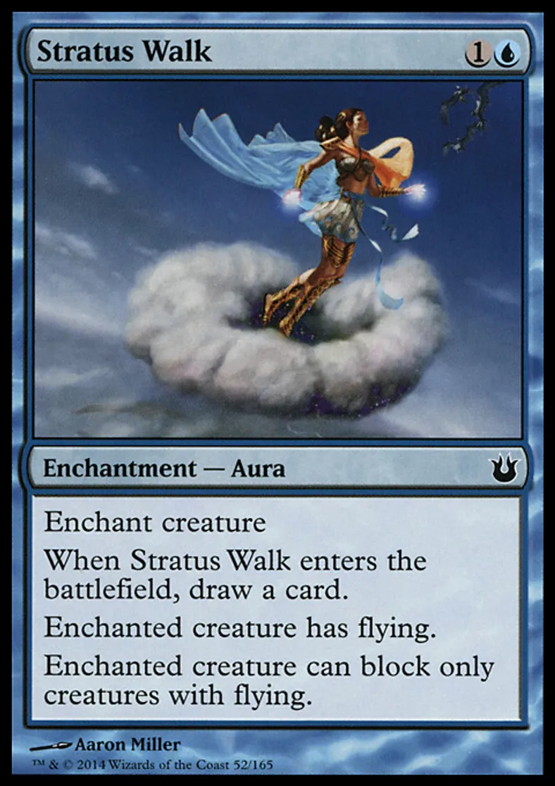| Oracle Text | Enchant creature When Stratus Walk enters the battlefield, draw a card. Enchanted creature has flying. Enchanted creature can block only creatures with flying. | ||