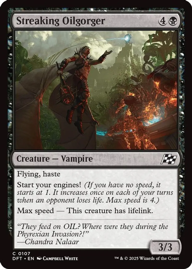 Magic: the Gathering (mtg) Common creature — vampire Streaking Oilgorger from Aetherdrift (DFT) last updated 2025-12-13 15:35:02