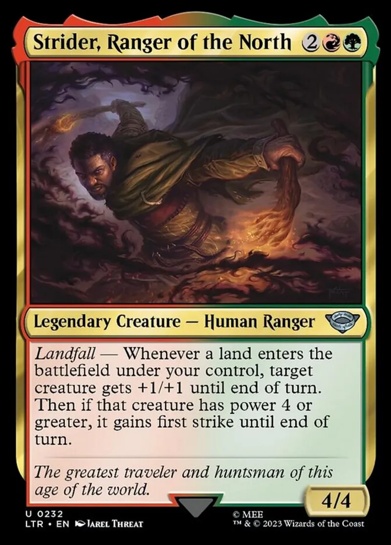 Magic: the Gathering (mtg) uncommon Legendary Creature — Human Ranger Strider, Ranger of the North from The Lord of the Rings: Tales of Middle-earth (ltr) last updated 2026-02-21 15:42:01