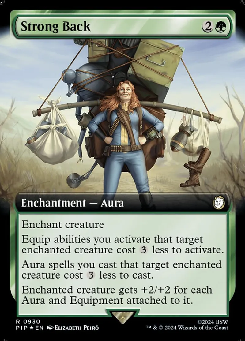 Magic: the Gathering (mtg) rare Enchantment — Aura Strong Back from Universes Beyond: Fallout (pip) last updated 2025-12-14 14:16:06