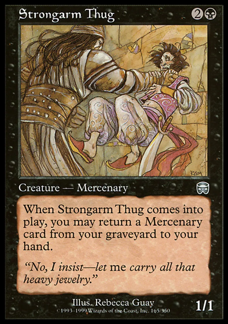 | Oracle Text | When Strongarm Thug enters the battlefield, you may return target Mercenary card from your graveyard to your hand. | ||