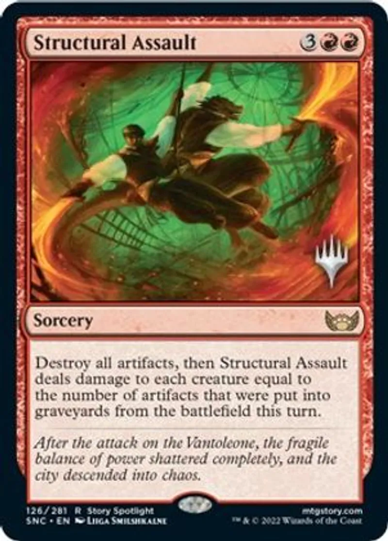 Magic: the Gathering (mtg) Rare Sorcery Structural Assault from Promo Pack: Streets of New Capenna (PSNC) last updated 2026-02-21 16:06:36