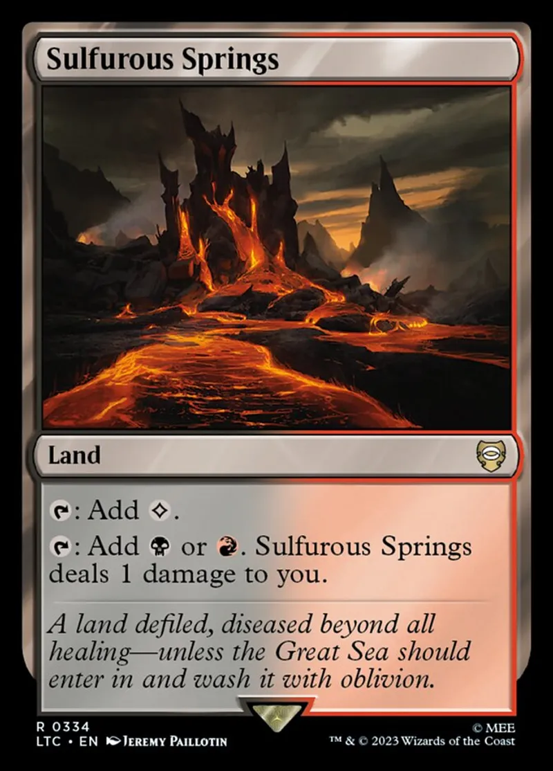 Magic: the Gathering (mtg) rare Land Sulfurous Springs from Tales of Middle-earth Commander (ltc) last updated 2026-02-24 14:57:02