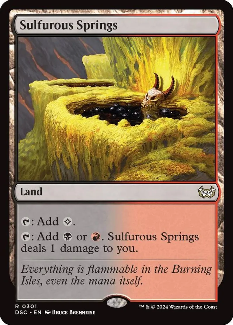 Sulfurous Springs is a Rare in the set Commander: Duskmourn: House of Horror.