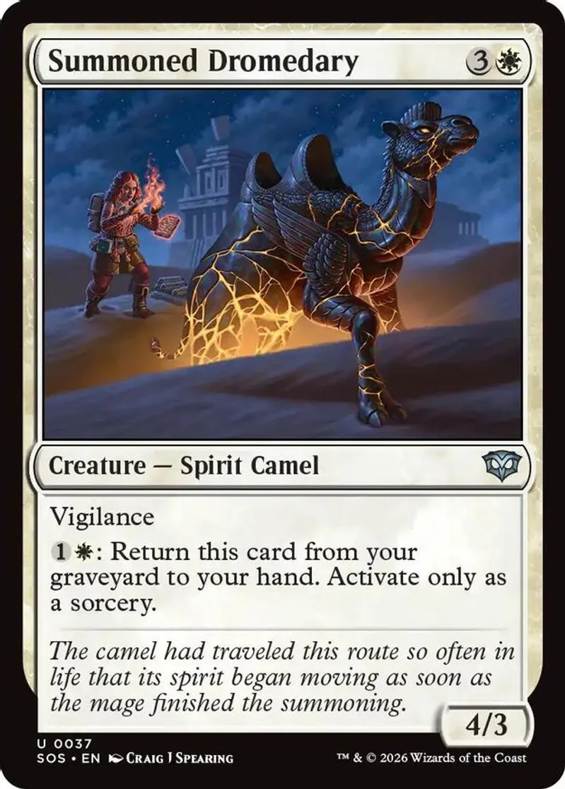 Magic: the Gathering (mtg) Uncommon creature — spirit camel Summoned Dromedary from Secrets of Strixhaven (SOS) last updated 2026-04-16 23:13:05