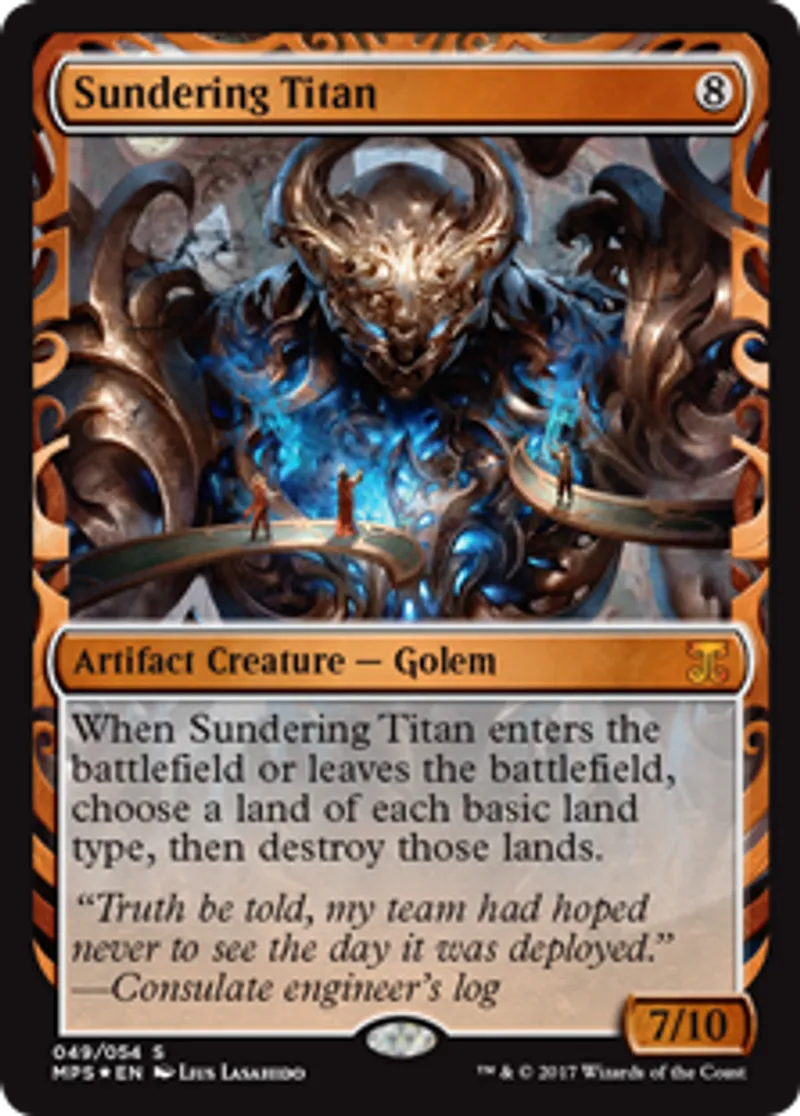 Magic: the Gathering (mtg) Special Artifact Creature - Golem Sundering Titan from Masterpiece Series: Kaladesh Inventions (MP1) last updated 2026-02-24 16:03:36