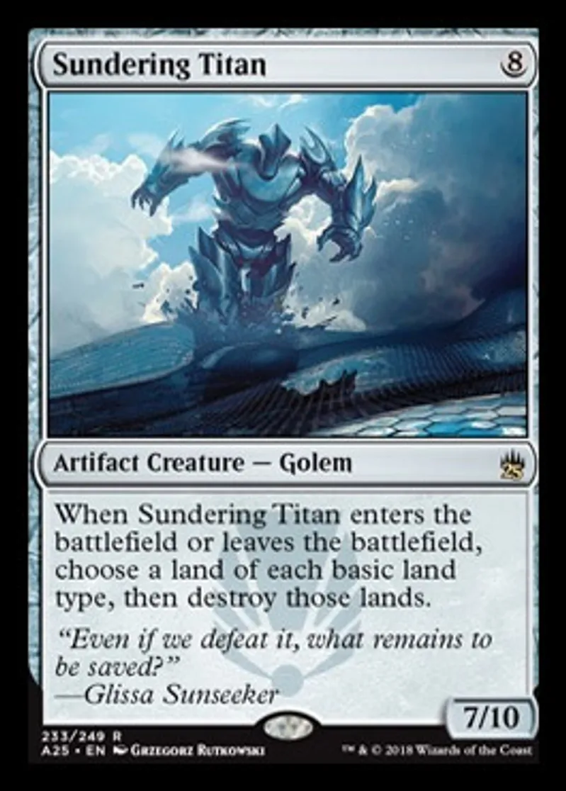 Magic: the Gathering (mtg) Rare Artifact Creature - Golem Sundering Titan from Masters 25 (A25) last updated 2026-02-21 16:50:36