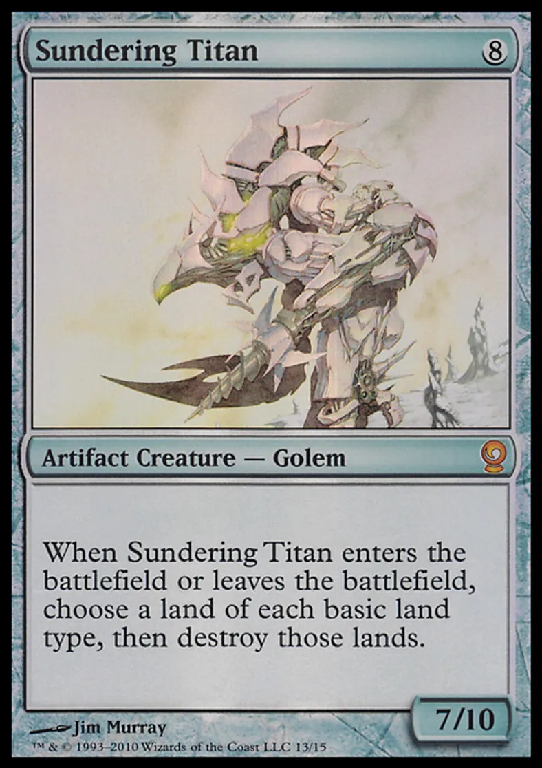 | Oracle Text | When Sundering Titan enters the battlefield or leaves the battlefield, choose a land of each basic land type, then destroy those lands. | ||