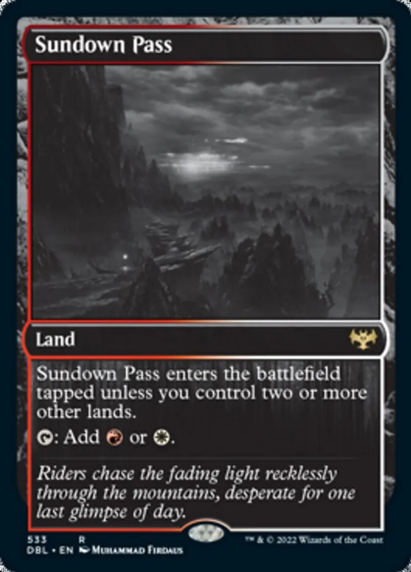 | Oracle Text | Sundown Pass enters the battlefield tapped unless you control two or more other lands.