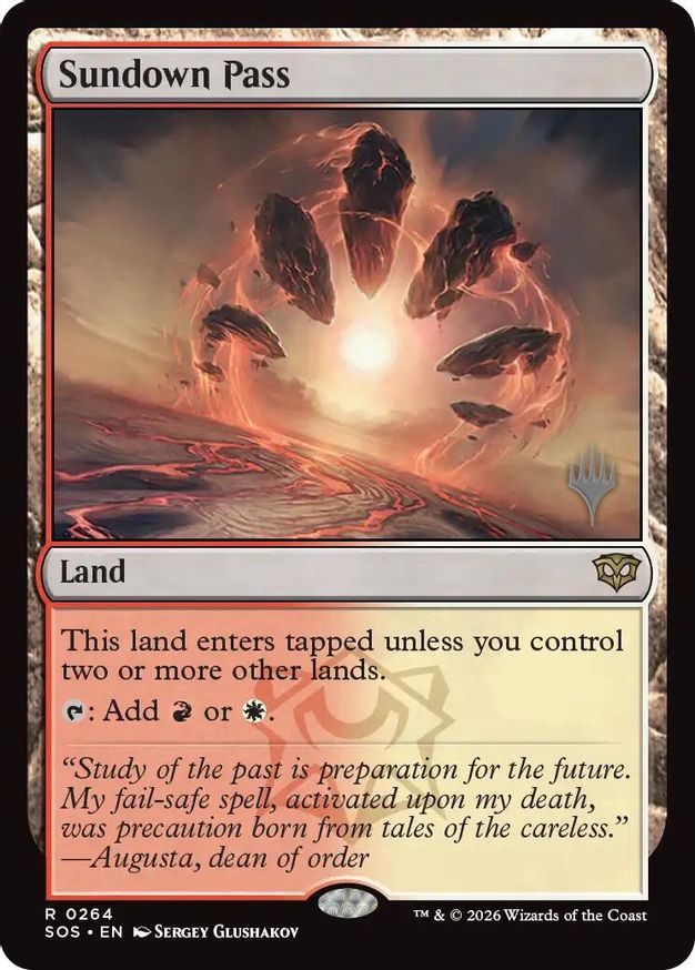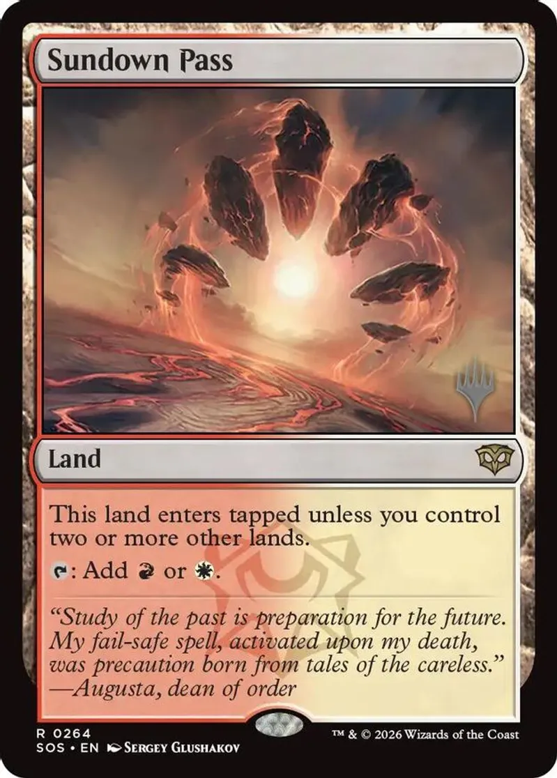 Magic: the Gathering (mtg) Rare land Sundown Pass from Promo Pack: Secrets of Strixhaven (PPSOS) last updated 2026-04-17 21:11:42