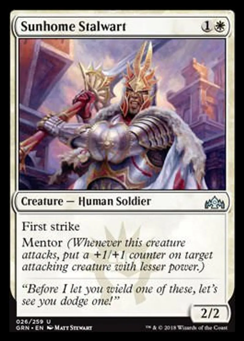 Magic: the Gathering (mtg) Uncommon Creature - Human Soldier Sunhome Stalwart from Guilds of Ravnica (GRN) last updated 2026-02-21 16:54:37