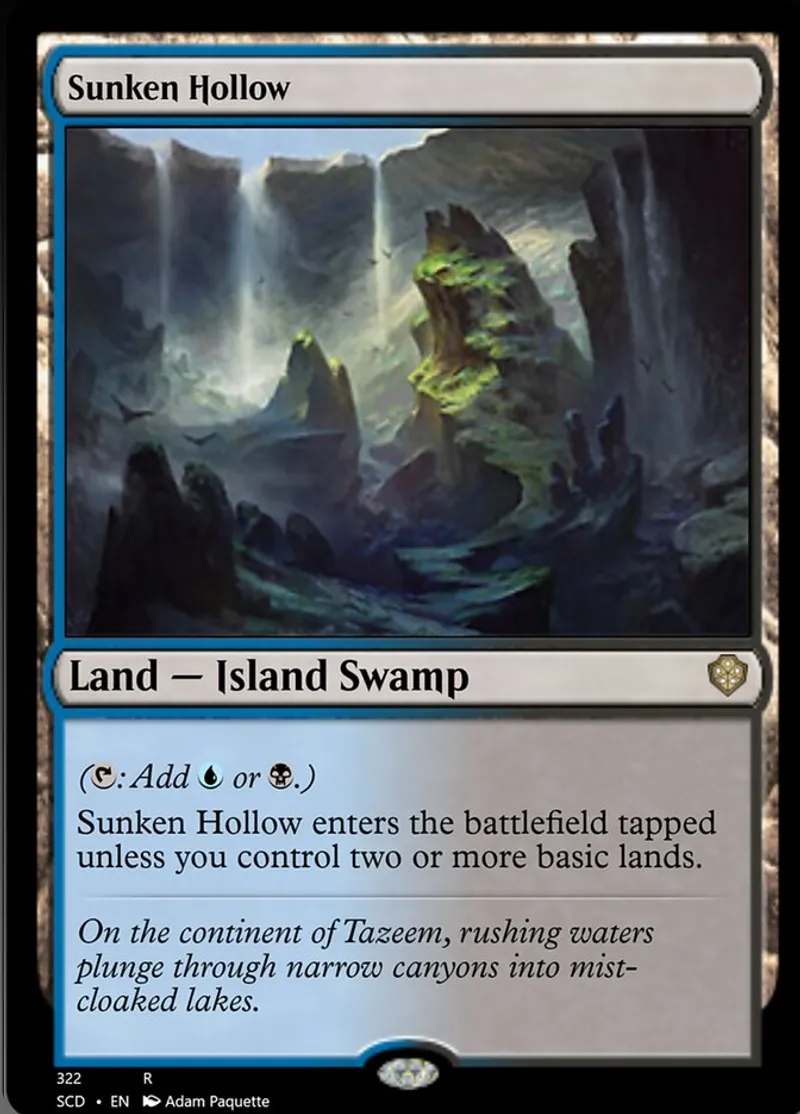 Magic: the Gathering (mtg) rare Land — Island Swamp Sunken Hollow from Starter Commander Decks (scd) last updated 2026-02-21 16:19:33