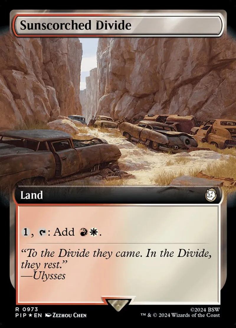 Sunscorched Divide (Extended Art) (Surge Foil) is a rare in the set Universes Beyond: Fallout.