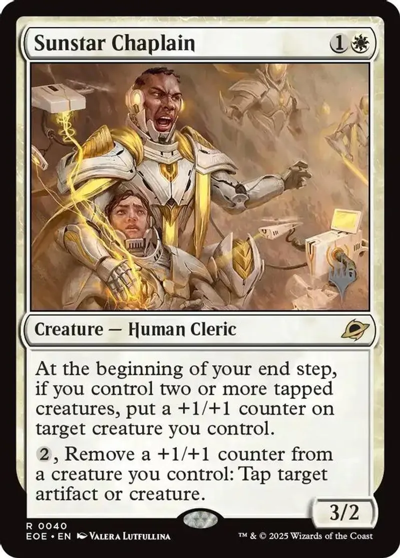 Magic: the Gathering (mtg) Rare creature — human cleric Sunstar Chaplain from Promo Pack: Edge of Eternities (PPEOE) last updated 2026-01-19 16:06:02