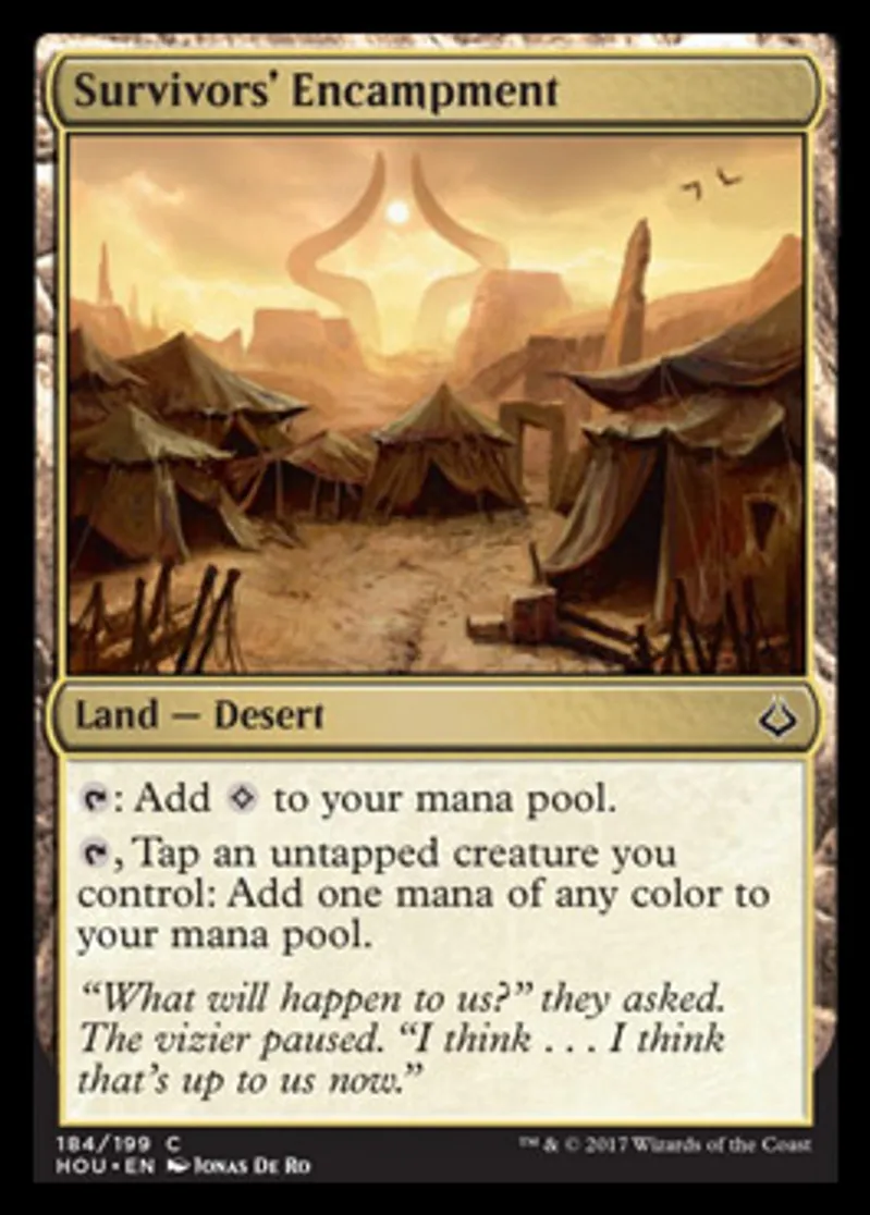 Magic: the Gathering (mtg) Common Land - Desert Survivors' Encampment from Hour of Devastation (HOU) last updated 2026-02-24 14:38:37