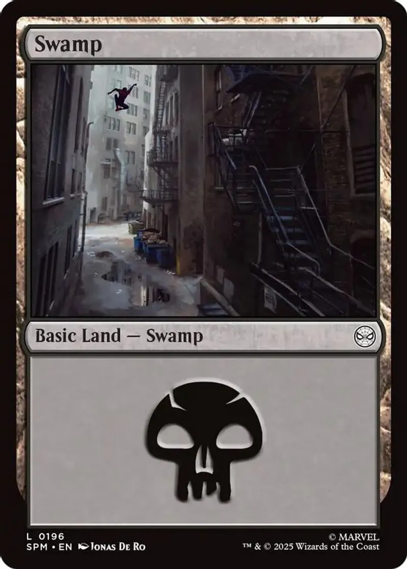 Swamp (0196) is a Basic Land in the set Marvel's Spider-Man.