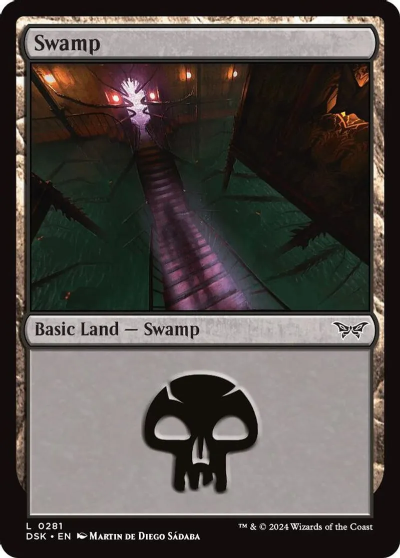 Swamp (0281) is a Basic Land in the set Duskmourn: House of Horror.