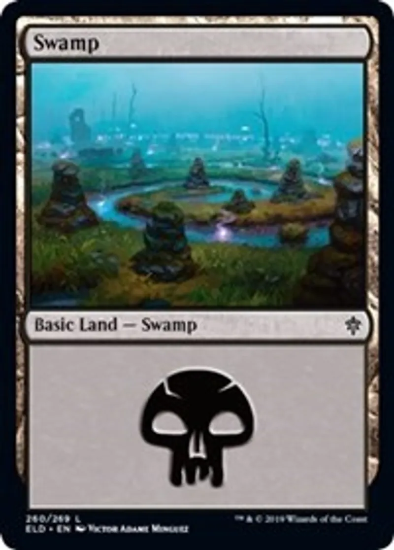 Swamp (260) is a Basic Land in the set Throne of Eldraine.