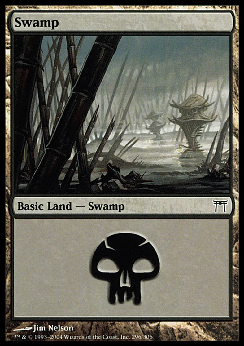 Swamp (296) is a Basic Land in the set Champions of Kamigawa.