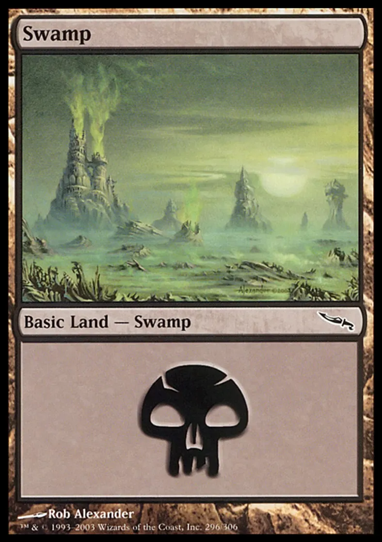 Swamp (296) is a Basic Land in the set Mirrodin.