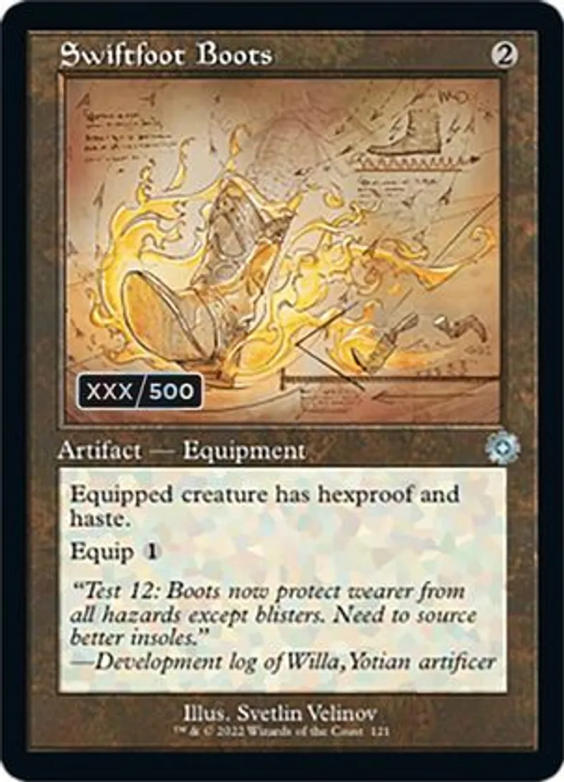 Swiftfoot Boots (Schematic) (Serial Numbered) is a Uncommon in the set The Brothers' War Serialized.
