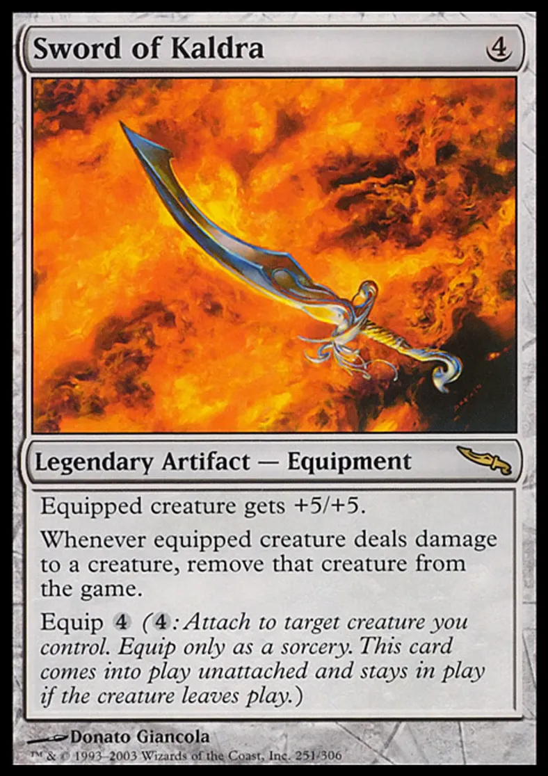 Magic: the Gathering (mtg) Rare Legendary Artifact - Equipment Sword of Kaldra from Mirrodin (MRD) last updated 2026-02-07 14:46:02