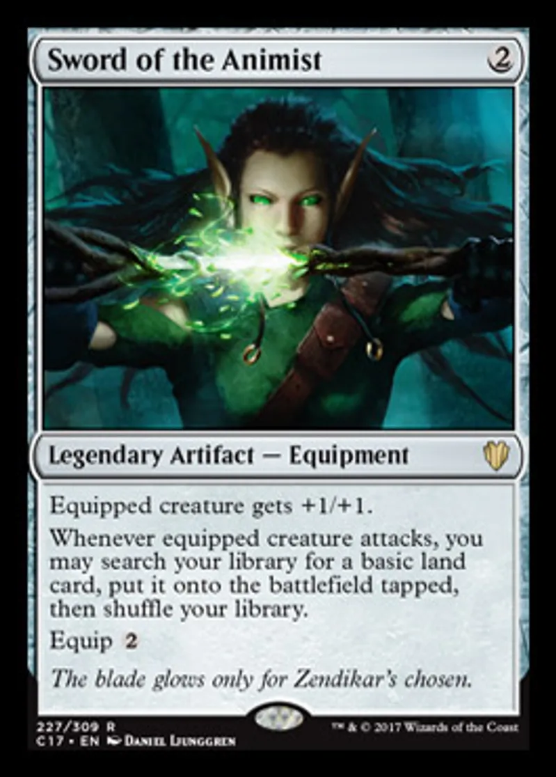 Magic: the Gathering (mtg) Rare Legendary Artifact - Equipment Sword of the Animist from Commander 2017 (C17) last updated 2026-02-07 14:40:32