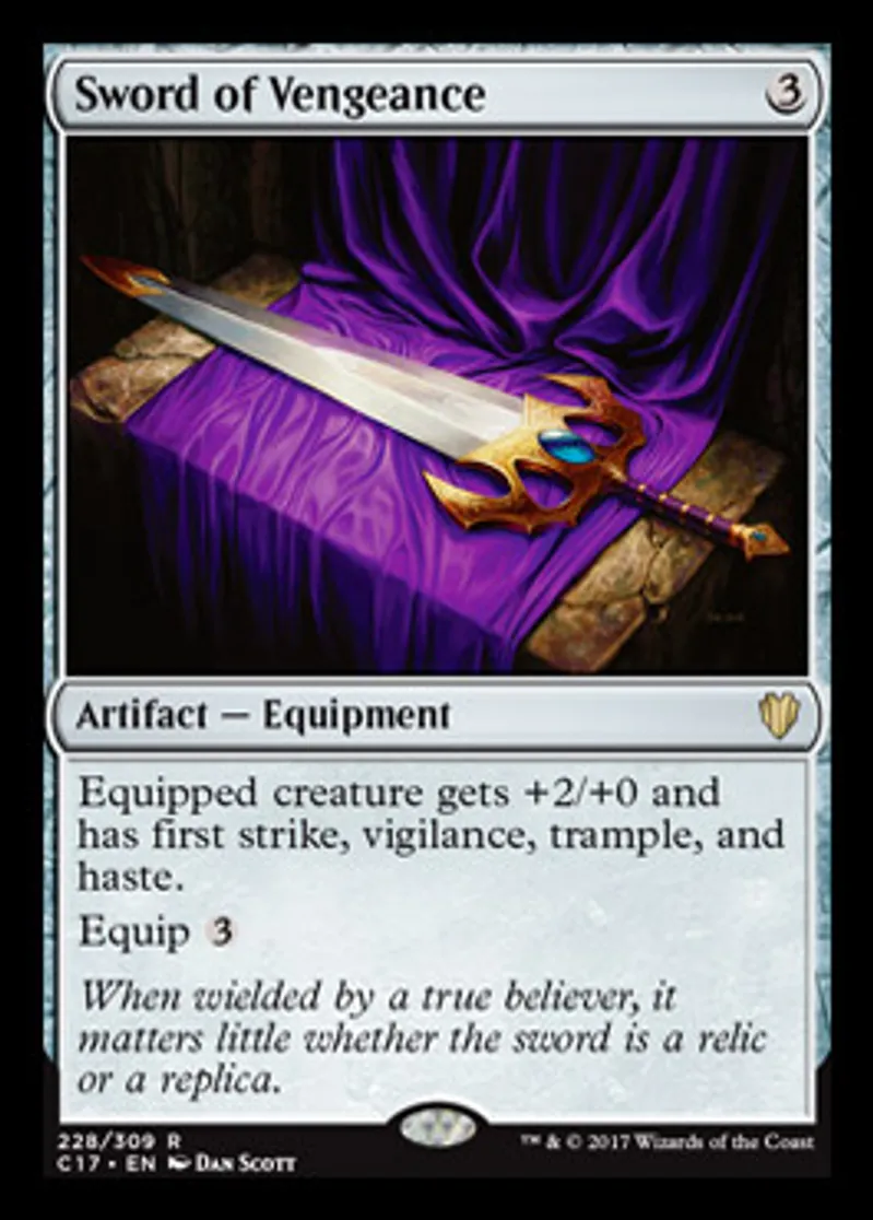 Magic: the Gathering (mtg) Rare Artifact - Equipment Sword of Vengeance from Commander 2017 (C17) last updated 2026-02-07 16:48:02