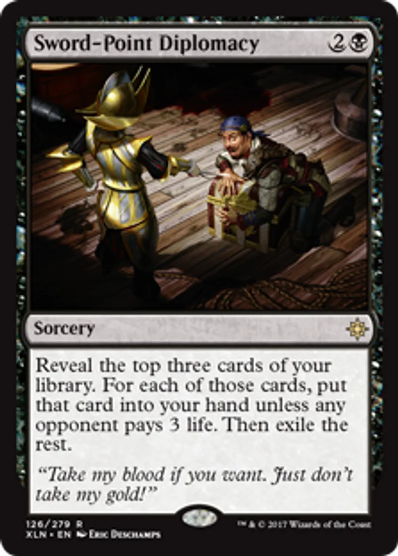 Magic: the Gathering (mtg) Rare Sorcery Sword-Point Diplomacy from Ixalan (XLN) last updated 2026-02-24 16:05:06