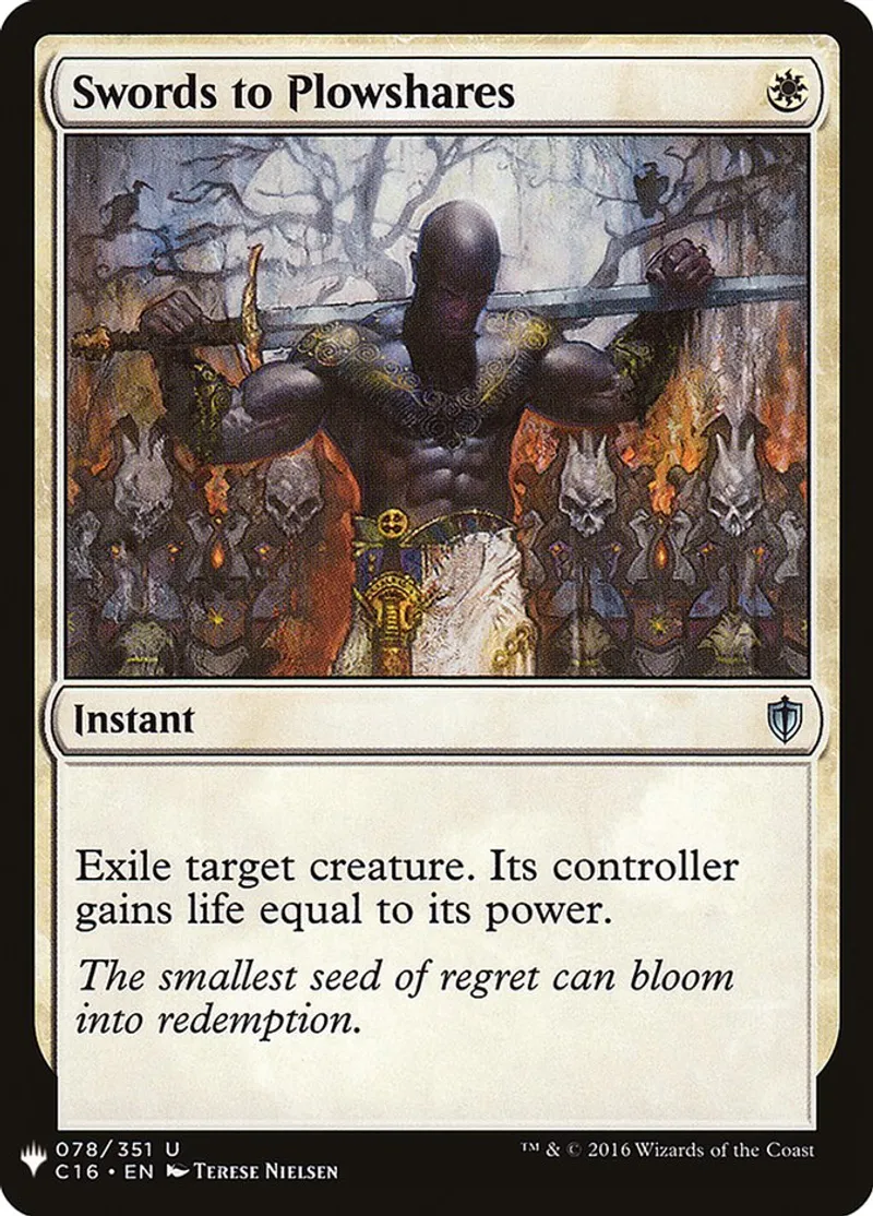 Swords to Plowshares is a uncommon in the set Mystery Booster.