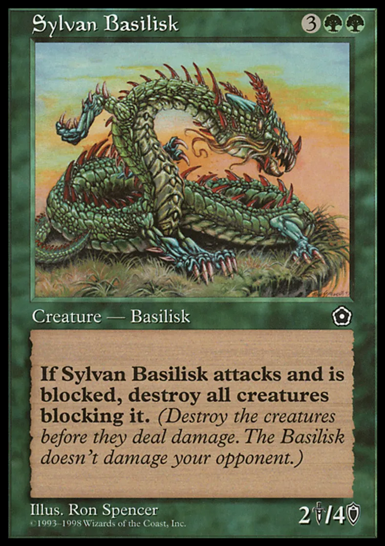 | Oracle Text | Whenever Sylvan Basilisk becomes blocked by a creature, destroy that creature. | ||