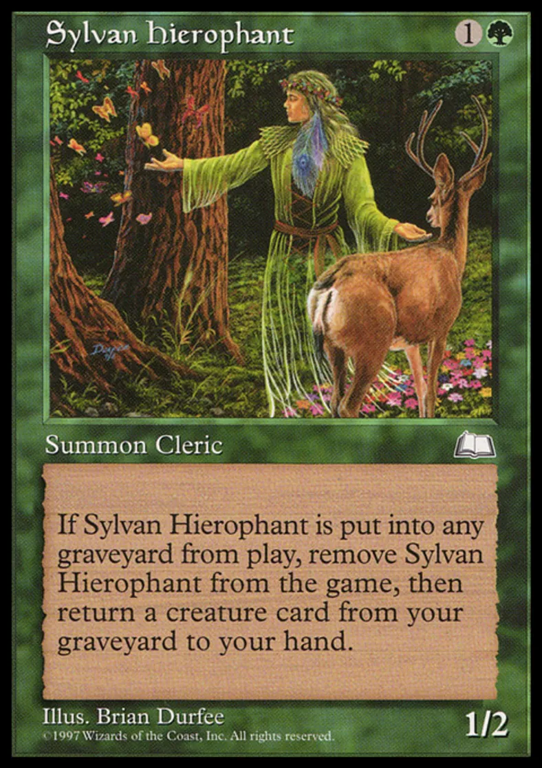 | Oracle Text | When Sylvan Hierophant dies, exile Sylvan Hierophant, then return another target creature card from your graveyard to your hand. | ||