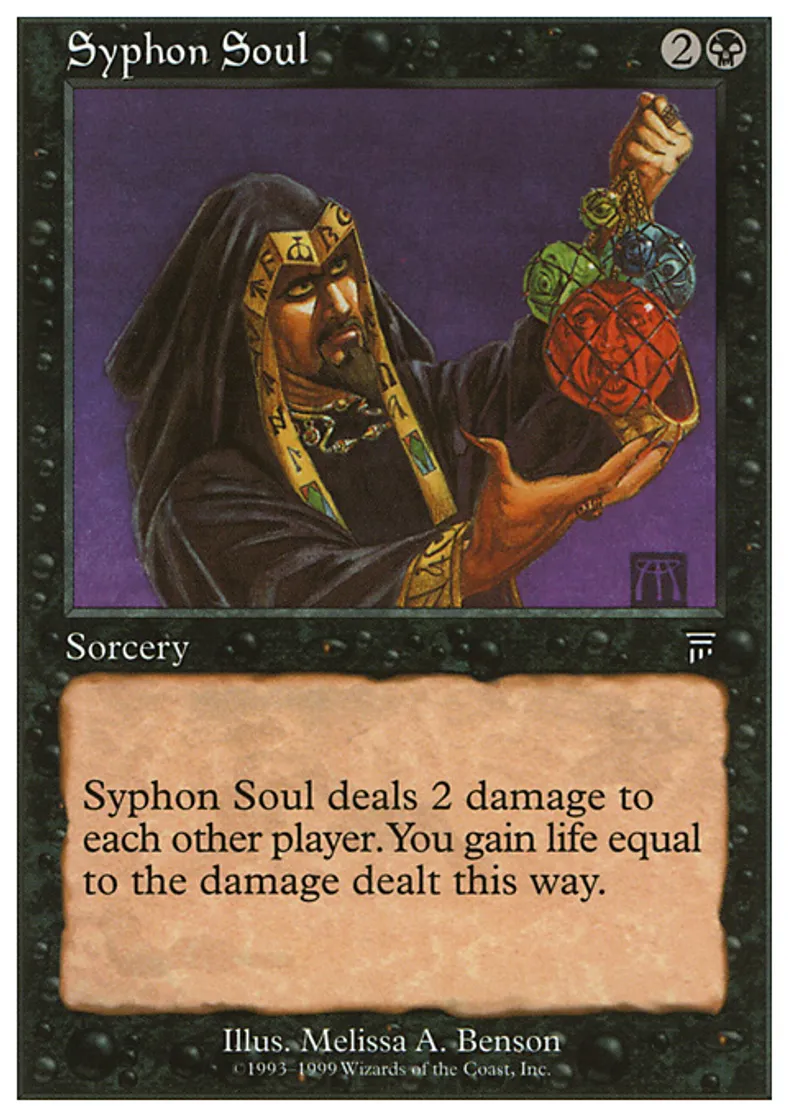 | Oracle Text | Syphon Soul deals 2 damage to each other player. You gain life equal to the damage dealt this way. | ||