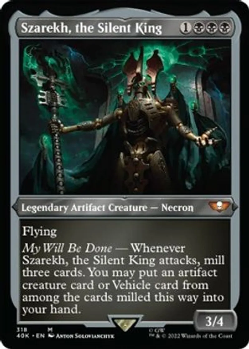 My Will Be Done — Whenever Szarekh, the Silent King attacks, mill three cards. You may put an artifact creature card or Vehicle card from among those cards milled this way into your hand. | ||