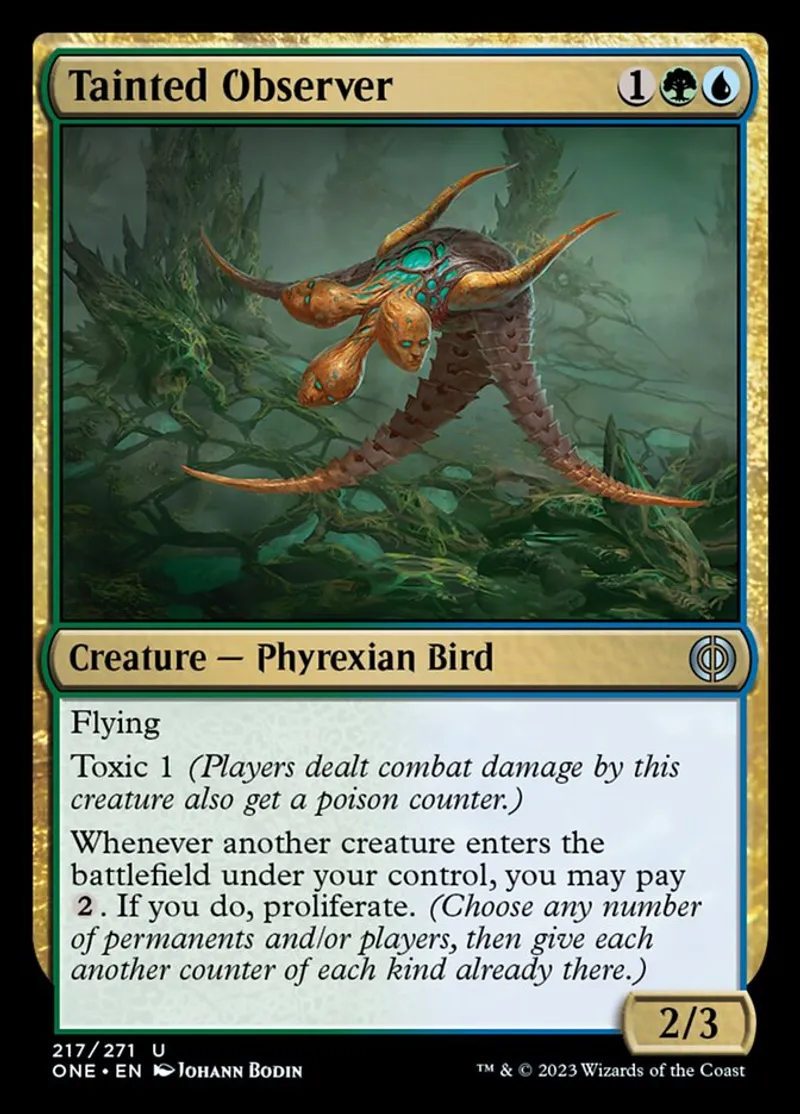 Tainted Observer is a uncommon in the set Phyrexia: All Will Be One.