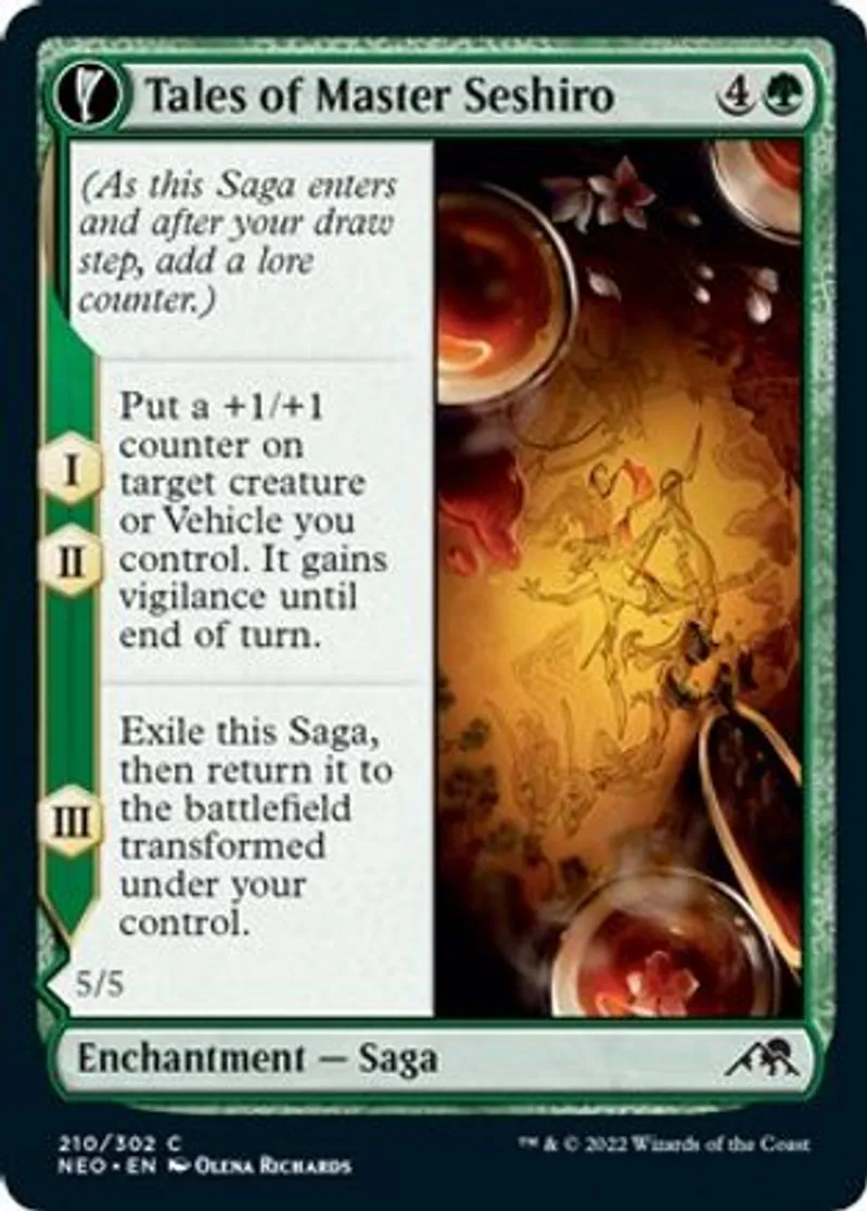 Magic: the Gathering (mtg) Common Enchantment — Saga // Enchantment Creature — Snake Warrior Tales of Master Seshiro from Kamigawa: Neon Dynasty (neo) last updated 2026-02-21 16:02:32