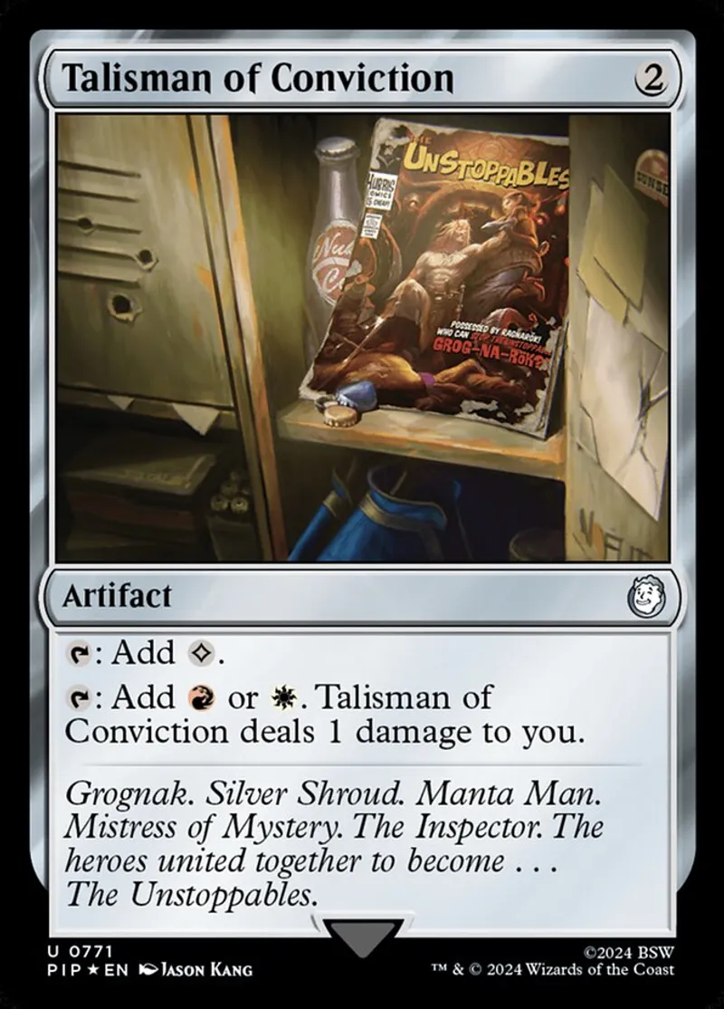 Magic: the Gathering (mtg) uncommon Artifact Talisman of Conviction from Universes Beyond: Fallout (pip) last updated 2025-12-13 15:58:01
