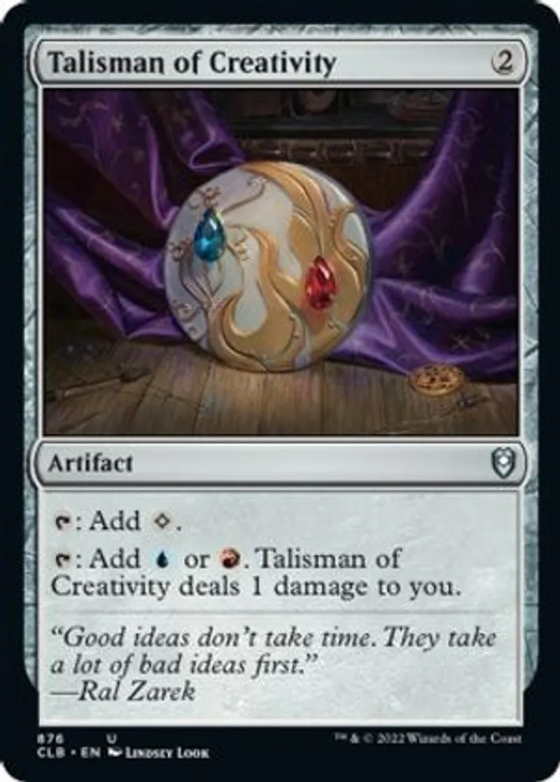 Talisman of Creativity is a Uncommon in the set Commander Legends: Battle for Baldur's Gate.