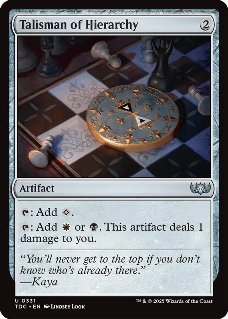 Magic: the Gathering (mtg) Uncommon artifact Talisman of Hierarchy from Commander: Tarkir: Dragonstorm (TDC) last updated 2025-12-14 15:17:32