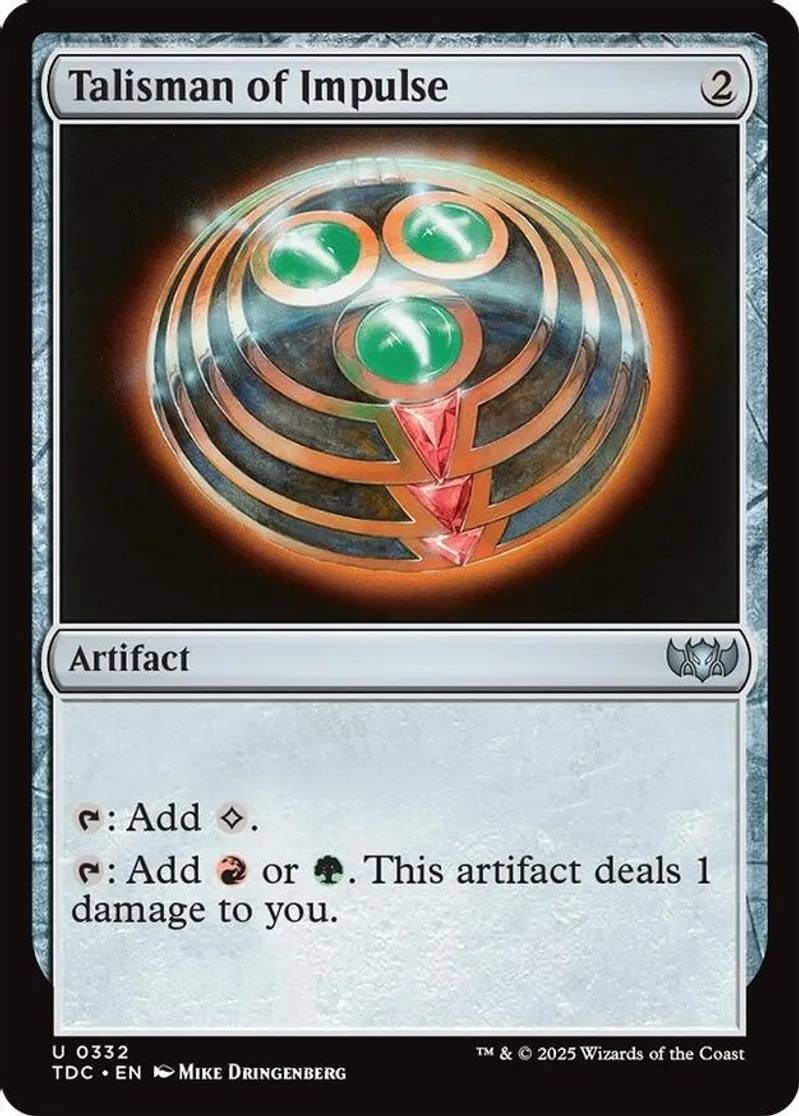 Magic: the Gathering (mtg) Uncommon artifact Talisman of Impulse from Commander: Tarkir: Dragonstorm (TDC) last updated 2026-01-24 17:40:06