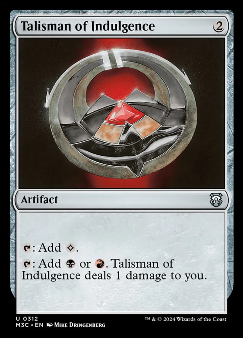 Magic: the Gathering (mtg) uncommon Artifact Talisman of Indulgence from Modern Horizons 3 Commander (m3c) last updated 2025-12-19 14:57:03