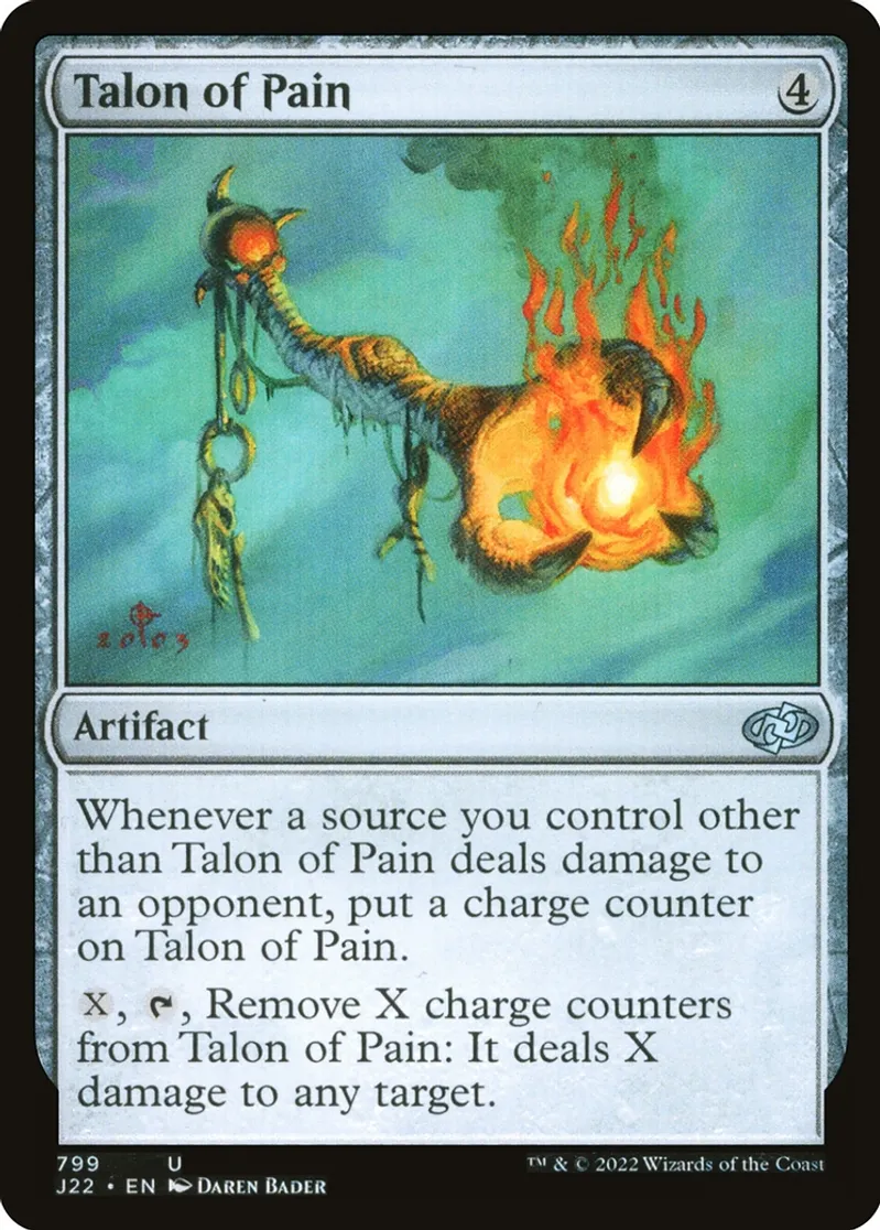 | Oracle Text | Whenever a source you control other than Talon of Pain deals damage to an opponent, put a charge counter on Talon of Pain.