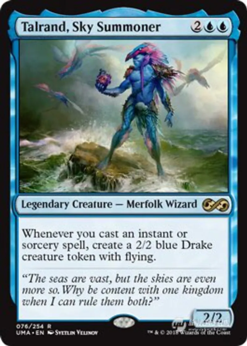 Magic: the Gathering (mtg) Rare Legendary Creature — Merfolk Wizard Talrand, Sky Summoner from Ultimate Masters (UMA) last updated 2026-02-24 16:07:02